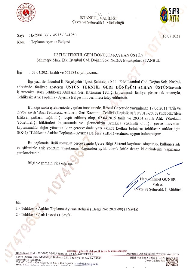 We collect textile wastes, store them in two different warehouses over 2000 square meters and we get them ready to be processed in accordance with the demand with over 20 years of experince and ministry approved Recycling and Separation Certificate for a more habitable and respectable world.